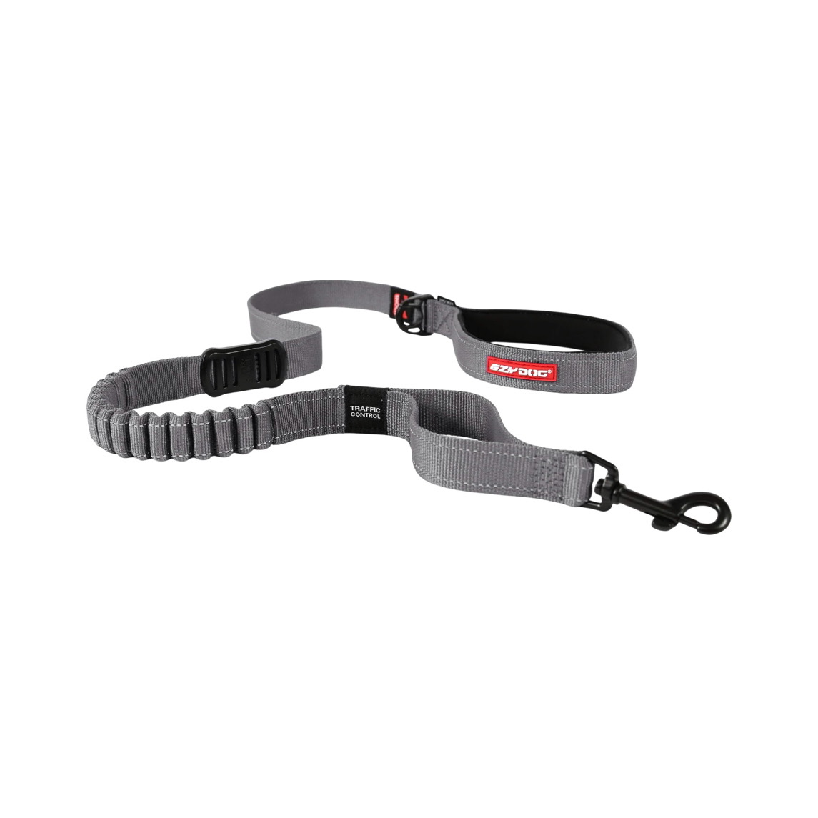 A traffic control handle is carefully placed lower on the lead to allow for close control in situations that require it.